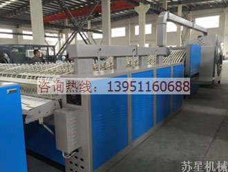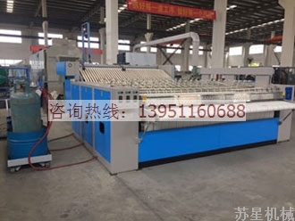 蘇星燃?xì)猓ㄌ烊粴?,液化石油氣)直燃式?jié)能環(huán)保型燙平機(jī),無(wú)須鍋爐,耗能量是通用燙平機(jī)的三分之一。當(dāng)布草含水率≤61%,熨燙速度為25-30米時(shí),三滾燃?xì)庀牧績(jī)H4.62Kg/h,平均到每滾只有1.54Kg/h.